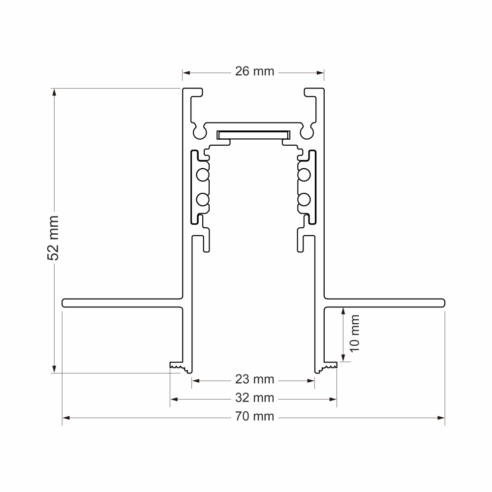 Трек магнитный встраиваемый, алюминий, черный, 48V, длина 2500 мм, ширина 70 мм, высота 53 мм, видимая часть 26 мм, возможно подключение по DALI, торцвые заглушки не в комплекте