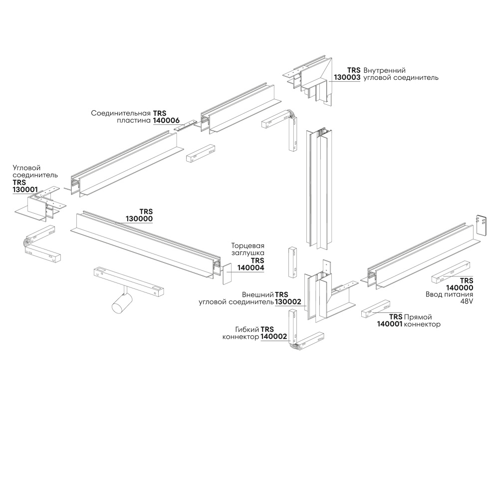 130000 TRS Astrelio Трек магнитный встраиваемый 2,5 м., 48, черный